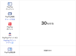 上記のキャンペーン期間中に対象店舗でPayPay払いをすると30%のPayPayポイントが付与されることになります。